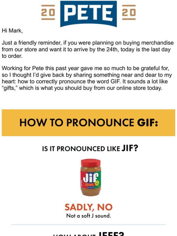 Leave a vote for your preferred pronunciation. In the gif pronunciation debate Jif brands teaming up with Giphy for National Peanut Butter Lovers Day with a definitive answer.